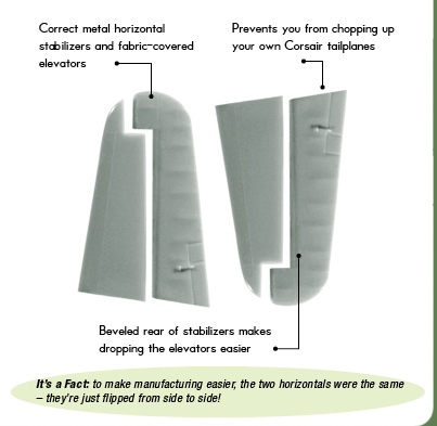 Nothing adds that nonchalant, just-sitting-around-the-airbase look like dropped elevators. On the Corsair, these often appeared in their lowered position; our parts are already separated and can be added directly to your F4U with no cutting or cursing!